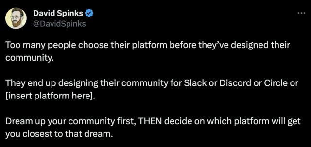 This thread and its replies highlight the importance of designing your community before you choose a platform. The author argues that too many people start by choosing a platform, and then they try to design their community around that platform. This can lead to problems, because the platform may not be the best fit for the community's needs.